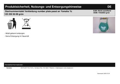 Titel: | Startnummerntafel Verkleidung number plate passt an Yamaha Yz 125 250 92-99 grün |