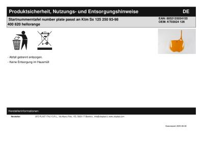Titel: | Startnummerntafel number plate passt an Ktm Sx 125 250 93-98 400 620 hellorange |
