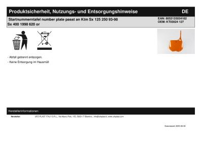 Titel: | Startnummerntafel number plate passt an Ktm Sx 125 250 93-98 Sx 400 1998 620 or |