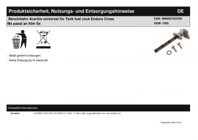 | Titel: | Acerbis Benzinhahn Kraftstoffhahn für Tank fuel cock Enduro Cross Mx passt für Ktm |