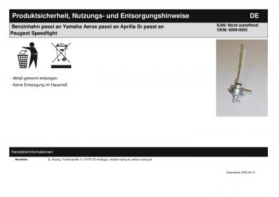 | Titel: | Benzinhahn passt an Yamaha Aerox passt an Aprilia Sr passt an Peugeot Speedfight |