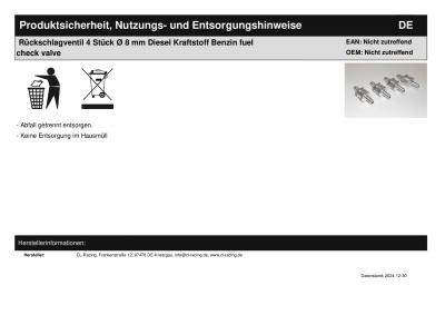 | Titel: | Rückschlagventile 4 Stück Ø 8 mm fuel check valve Diesel Kraftstoff Benzin |
