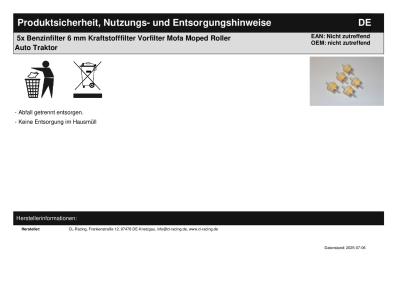 Titel: | 5x Benzinfilter 6 mm Kraftstofffilter Vorfilter Mofa Moped Roller Auto Traktor |