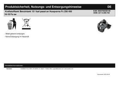 | Titel: | Kraftstofftank Benzintank 15 l fuel passt an Husqvarna Fc 250 450 16-18 Fe sw |