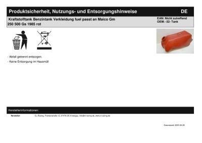 | Titel: | Kraftstofftank Benzintank Verkleidung fuel passt an Maico Gm 250 500 Gs 1985 rot |