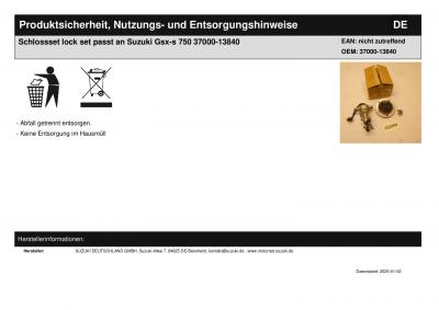 | Titel: | Schlossset lock set passt an Suzuki Gsx-s 750 37000-13840 |
