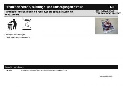 | Titel: | Tankdeckel für Benzintank mit Ventil fuel cap passt an Suzuki Rm 65 250 500 rot |