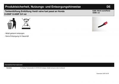 | Titel: | Tankentlüftung Entlüftung Ventil valve fuel passt an Honda Cr250F Cr450F Crf rot |