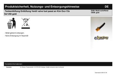 | Titel: | Tankentlüftung Entlüftung Ventil valve fuel passt an Ktm Exc-f Sx Sxf 250 gold |