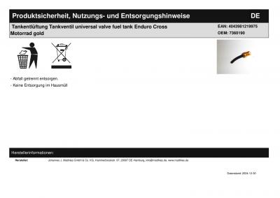| Titel: | Tankentlüftung Tankventil universal valve fuel tank Enduro Cross Motorrad gold |