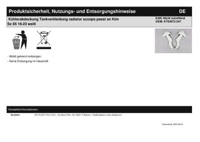 Titel: | Kühlerabdeckung Tankverkleidung radiator scoops passt an Ktm Sx 65 16-23 weiß |