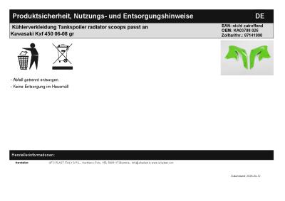 | Titel: | Kühlerverkleidung Tankspoiler radiator scoops passt an Kawasaki Kxf 450 06-08 gr |