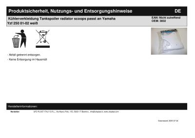 | Titel: | Kühlerverkleidung Tankspoiler radiator scoops passt an Yamaha Yzf 250 01-02 weiß |