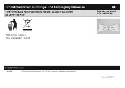 Titel: | Tankverkleidung Kühlerabdeckung radiator passt an Suzuki Rm 125 250 01-23 weiß |