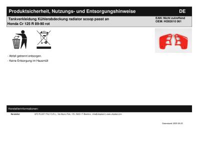 Titel: | Tankverkleidung Kühlerabdeckung radiator scoop passt an Honda Cr 125 R 89-90 rot |