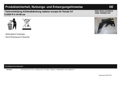 | Titel: | Tankverkleidung Kühlerabdeckung radiator scoops für Honda Crf Cr250f R X 04-09 sw |