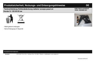 Titel: | Tankverkleidung Kühlerabdeckung radiator scoops passt an Honda Cr 125 02-03 sw |