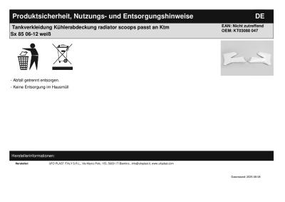 Titel: | Tankverkleidung Kühlerabdeckung radiator scoops passt an Ktm Sx 85 06-12 weiß |