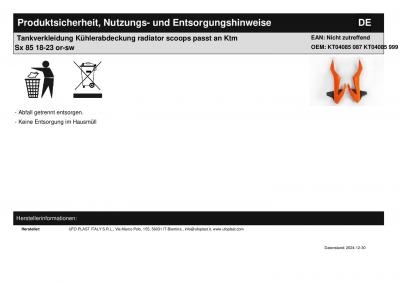 | Titel: | Tankverkleidung Kühlerabdeckung radiator scoops passt an Ktm Sx 85 18-24 or-sw |