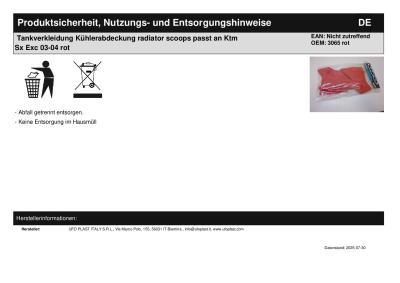 Titel: | Tankverkleidung Kühlerabdeckung radiator scoops passt an Ktm Sx Exc 03-04 rot |