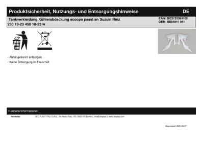 | Titel: | Tankverkleidung Kühlerabdeckung scoops passt an Suzuki Rmz 250 19-23 450 18-23 w |