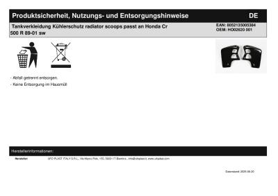 Titel: | Tankverkleidung Kühlerschutz radiator scoops passt an Honda Cr 500 R 89-01 sw |