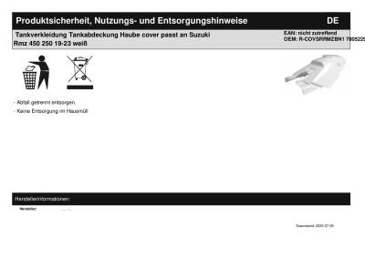 | Titel: | Tankverkleidung Tankabdeckung Haube cover passt an Suzuki Rmz 450 250 19-23 weiß |