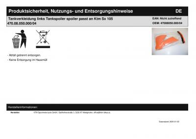 Tankverkleidung links Tankspoiler spoiler passt an Ktm Sx 105 470.08.050.000/04