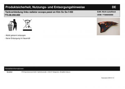 | Titel: | Tankverkleidung links radiator scoops passt an Ktm Sx Sx-f 450 773.08.050.000 |