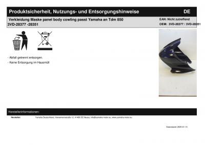 Titel: | Verkleidung Maske panel body cowling passt Yamaha an Tdm 850 3VD-28377 -28351 |