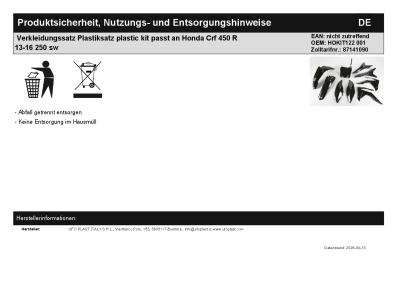 | Titel: | Verkleidungssatz Plastiksatz plastic kit passt an Honda Crf 450 R 13-16 250 sw |