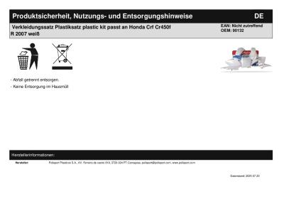 Titel: | Verkleidungssatz Plastiksatz plastic kit passt an Honda Crf Cr450f R 2007 weiß |