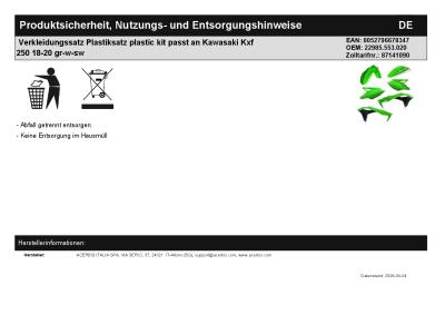 | Titel: | Verkleidungssatz Plastiksatz plastic kit passt an Kawasaki Kxf 250 18-20 gr-w-sw |