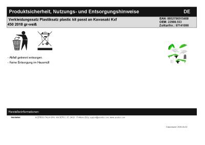 | Titel: | Verkleidungssatz Plastiksatz plastic kit passt an Kawasaki Kxf 450 2018 gr-weiß |