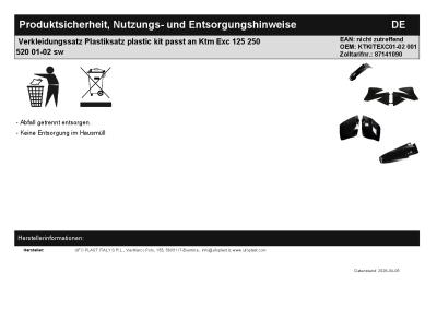 | Titel: | Verkleidungssatz Plastiksatz plastic kit passt an Ktm Exc 125 250 520 01-02 sw |