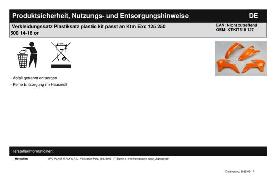 | Titel: | Verkleidungssatz Plastiksatz plastic kit passt an Ktm Exc 125 500 250 14-16 sw |