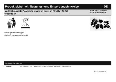 Verkleidungssatz Plastiksatz plastic kit passt an Ktm Sx 125 250 400 2000 sw