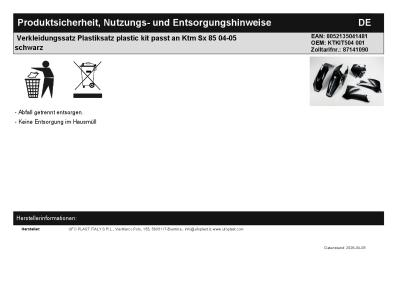 | Titel: | Verkleidungssatz Plastiksatz plastic kit passt an Ktm Sx 85 04-05 schwarz |