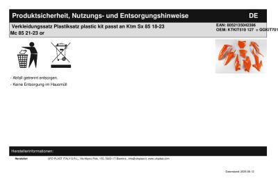 | Titel: | Verkleidungssatz Plastiksatz plastic kit passt an Ktm Sx 85 18-24 Mc 85 21-24 or |
