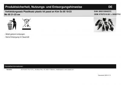 | Titel: | Verkleidungssatz Plastiksatz plastic kit passt an Ktm Sx 85 18-24 Mc 85 21-24 sw |