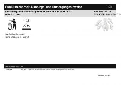 | Titel: | Verkleidungssatz Plastiksatz plastic kit passt an Ktm Sx 85 18-24 Mc 85 21-24 we |
