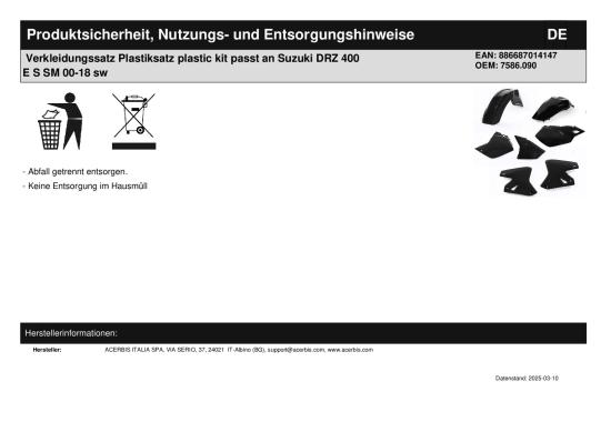 | Titel: | Verkleidungssatz Plastiksatz plastic kit passt an Suzuki Drz 400 00-18 E Sm ge-w |