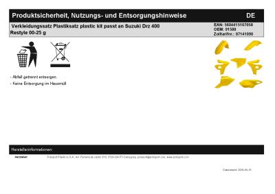 | Titel: | Verkleidungssatz Plastiksatz plastic kit passt an Suzuki Drz 400 Restyle 00-25 g |