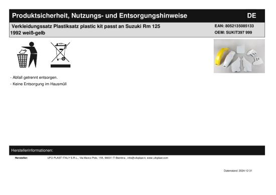 Titel: | Verkleidungssatz Plastiksatz plastic kit passt an Suzuki Rm 125 1992 gelb |