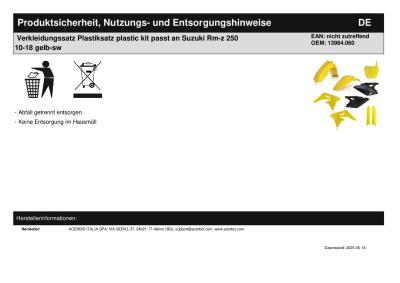 | Titel: | Verkleidungssatz Plastiksatz plastic kit passt an Suzuki Rmz 250 10-17 neongelb |
