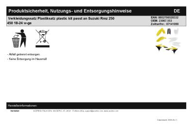 | Titel: | Verkleidungssatz Plastiksatz plastic kit passt an Suzuki Rmz 250 450 18-24 w-ge |