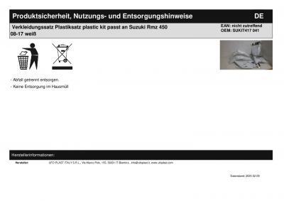 | Titel: | Verkleidungssatz Plastiksatz plastic kit passt an Suzuki Rmz 450 08-17 weiß |