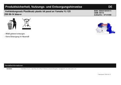 | Titel: | Verkleidungssatz Plastiksatz plastic kit passt an Yamaha Yz 125 250 06-14 blau-w |
