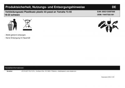 | Titel: | Verkleidungssatz Plastiksatz plastic kit passt an Yamaha Yz 65 19-25 schwarz |