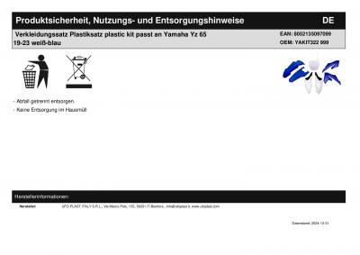 | Titel: | Verkleidungssatz Plastiksatz plastic kit passt an Yamaha Yz 65 19-25 weiß-blau |